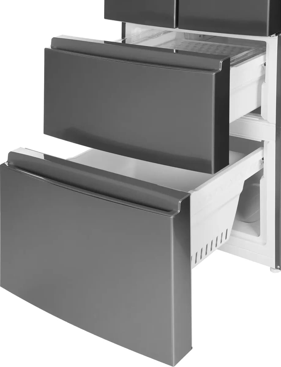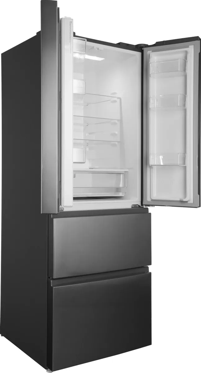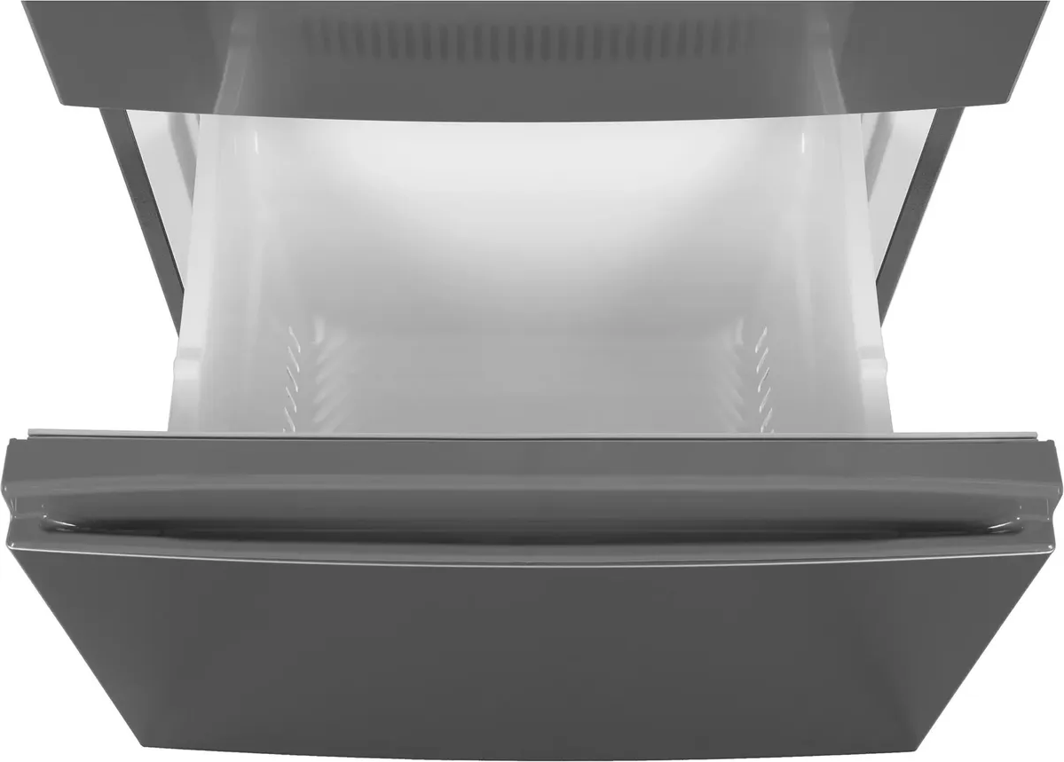 Холодильники с так называемой французской дверью или French Door также имеют распашные двери, но за ними находится не две, а одна камера. Эти двери занимают не всю высоту холодильника, а только ее часть. В нижней части подобных холодильников могут находиться либо еще две распашные двери, либо выдвижные морозильные ящики.