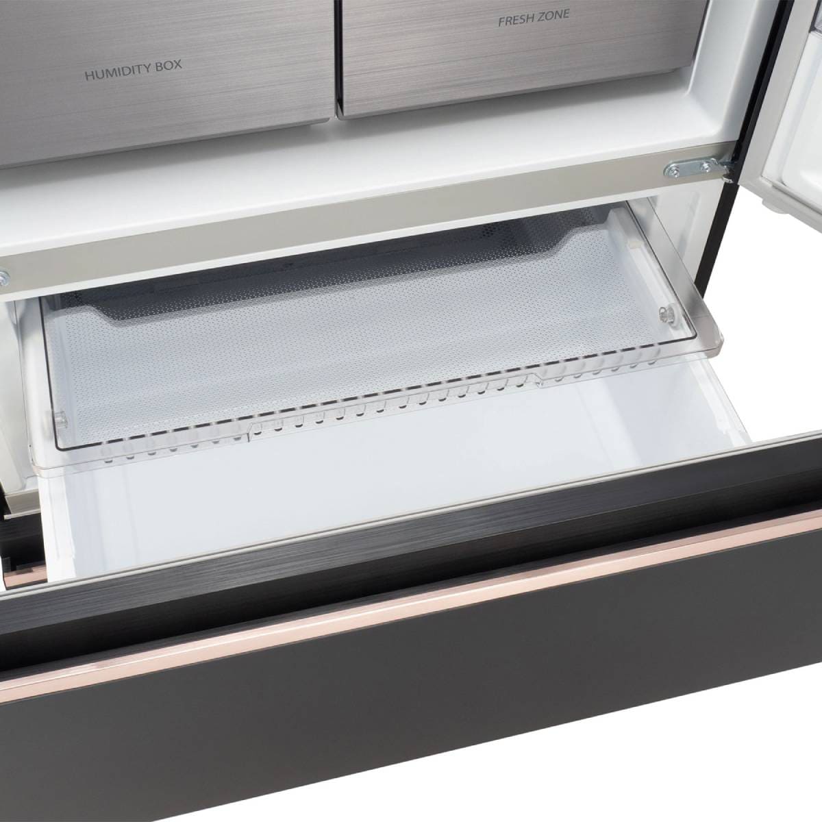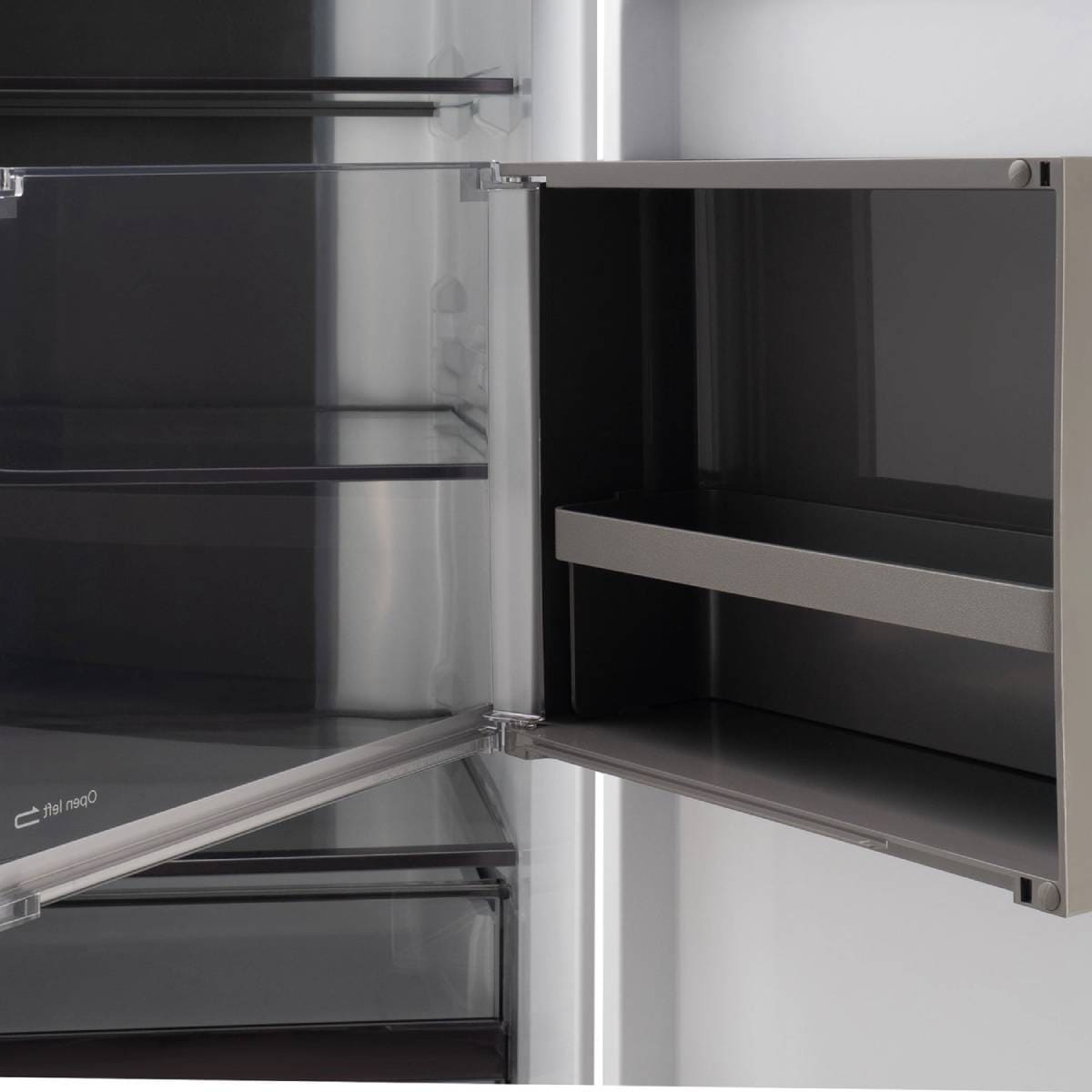 Очень редко в холодильниках можно увидеть откидную дверцу — она имеется, например, в отсеке для вакуумирования в холодильниках Hitachi.