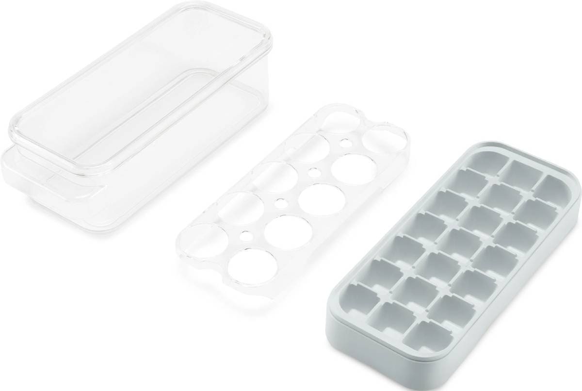 В холодильниках некоторых моделей имеются поворотные лотки для льда. Для заполнения водой их необходимо выдвинуть по направляющим, а для извлечения достаточно повернуть ручку. Кубики льда сами высыпаются в стоящую ниже емкость. Кроме пластиковых, широкое распространение получили силиконовые лотки для льда, из которых кубики можно извлечь скручиванием или перегибанием. Кроме классических квадратных ячеек, в лотке для льда могут быть ячейки самой разной формы круглые, шестиугольной или любой другой.