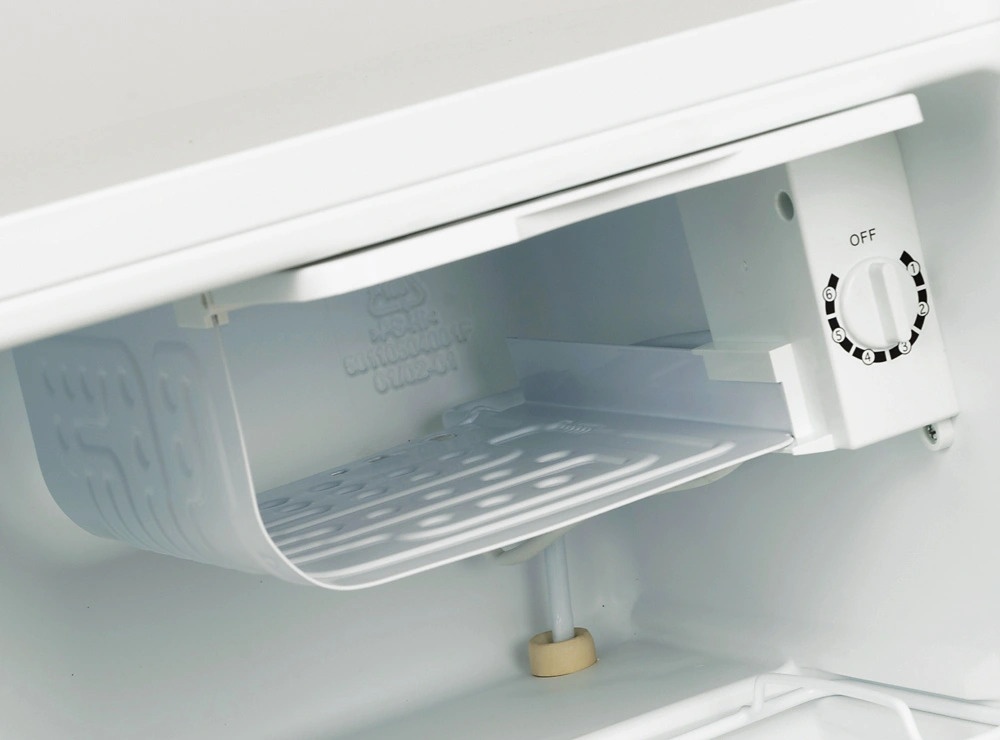 Капельное размораживание: при работе компрессора на задней стенке образуется лед; когда компрессор останавливается, льдинки тают, вода уходит в слив, а специальный испаритель удаляет ее.