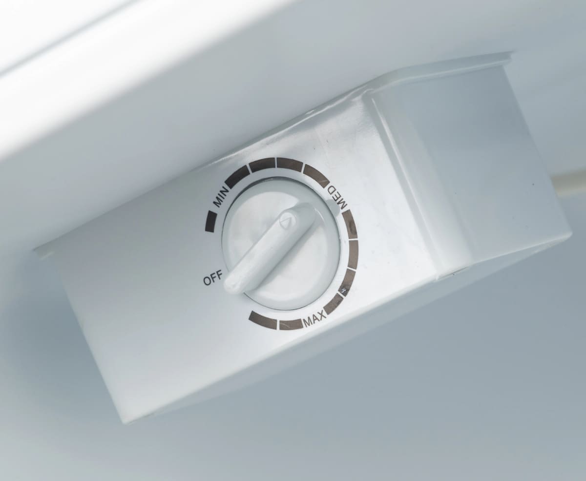 Основным элементом управления в холодильниках с механической или электромеханической системой служит поворотной переключатель с делениями. Поворотом ручки можно регулировать степень охлаждения на нескольких уровнях — от минимального до максимального. Точное значение температуры в таких устройствах установить невозможно. Кроме того, во всех холодильниках присутствует система индикации, которая действует при повышении температуры в камере выше заданного значения, а также лампочка, которая загорается при неплотно закрытой дверце.