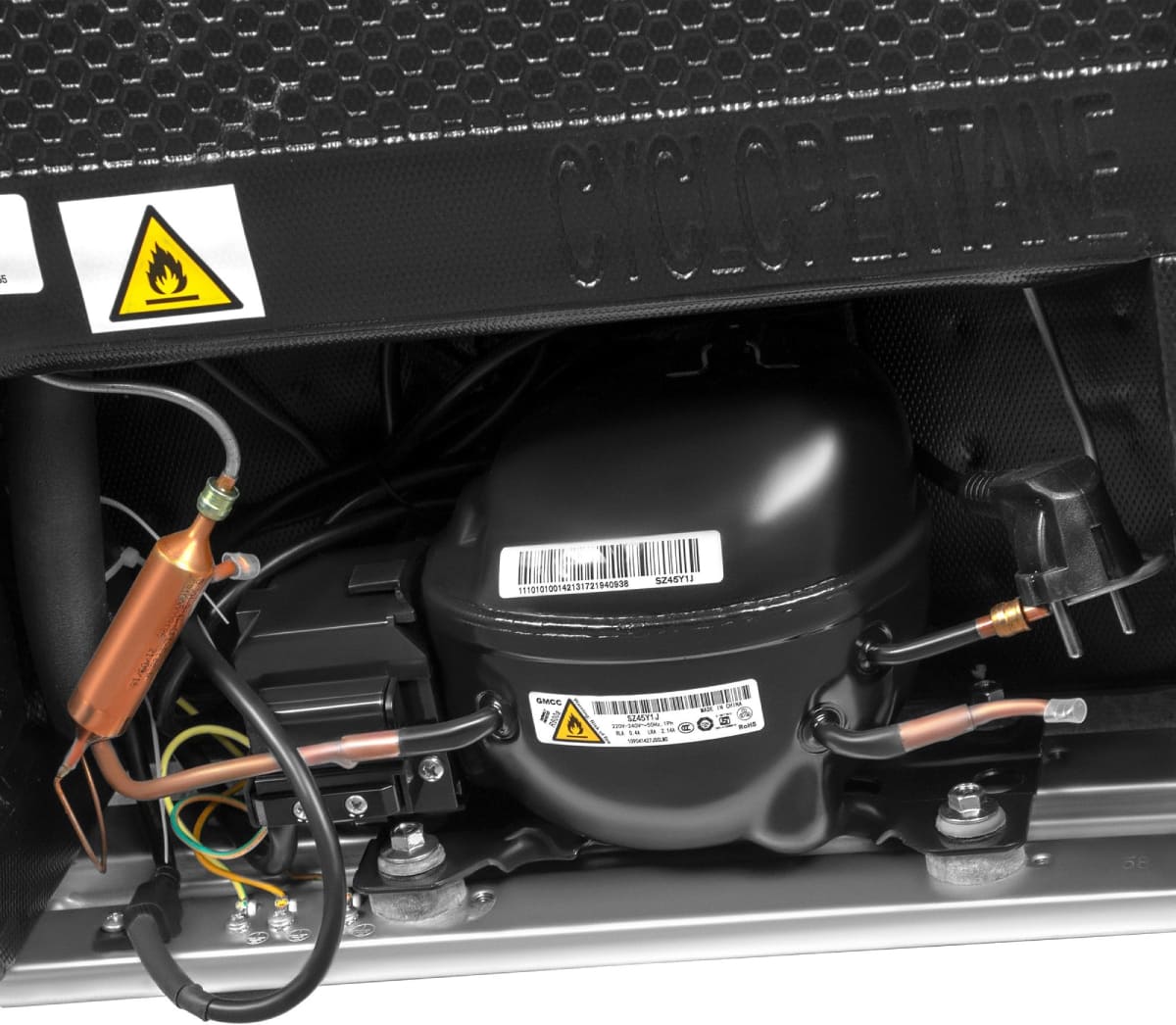 Однако наиболее безопасным хладагентом в настоящее время признан R600а, или изобутан, — бесцветный газ, который не разрушает озоновый слой и не способствует усилению парникового эффекта, отличается низким рабочим давлением, что способствует снижению уровня шума, а также позволяет уменьшить потребление электроэнергии.