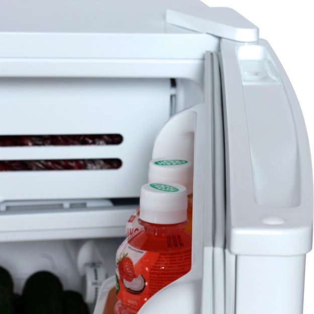 Данная модель — отдельностоящая, поэтому нужно тщательно подобрать место для ее размещения. Благодаря компактным размерам, она подойдет даже маленькой кухне. Вы можете поменять направление открывания двери, так как упор переставляемый и ее можно перевесить на другую сторону. Такая функция открывает больше возможностей для установки. Холодильник без морозильной камеры имеет свои преимущества: больше места для хранения продуктов краткого срока годности, разнообразие полок и ящиков для овощей, фруктов, молочных изделий. Количество камер: 1.