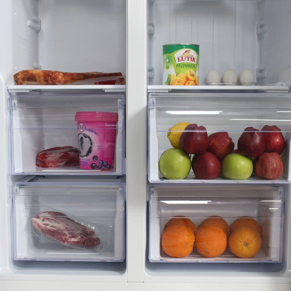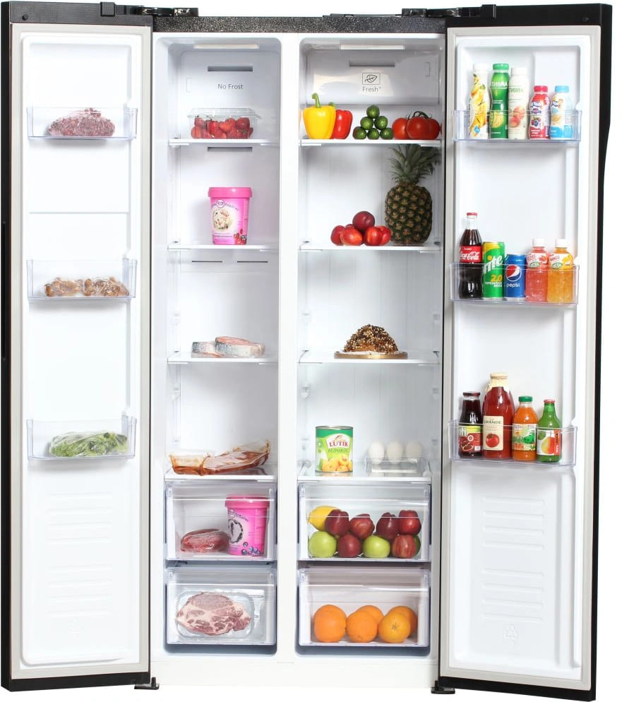 Холодильники Side-by-Side, что в переводе означает «бок-о-бок», — вместительные устройства, в которых холодильная и морозильная камеры располагаются рядом друг с другом. Они предназначаются для хранения значительного запаса продуктов и иногда называются холодильниками с американским типом компоновки, поскольку такие приборы с распашными дверями появились именно в США.