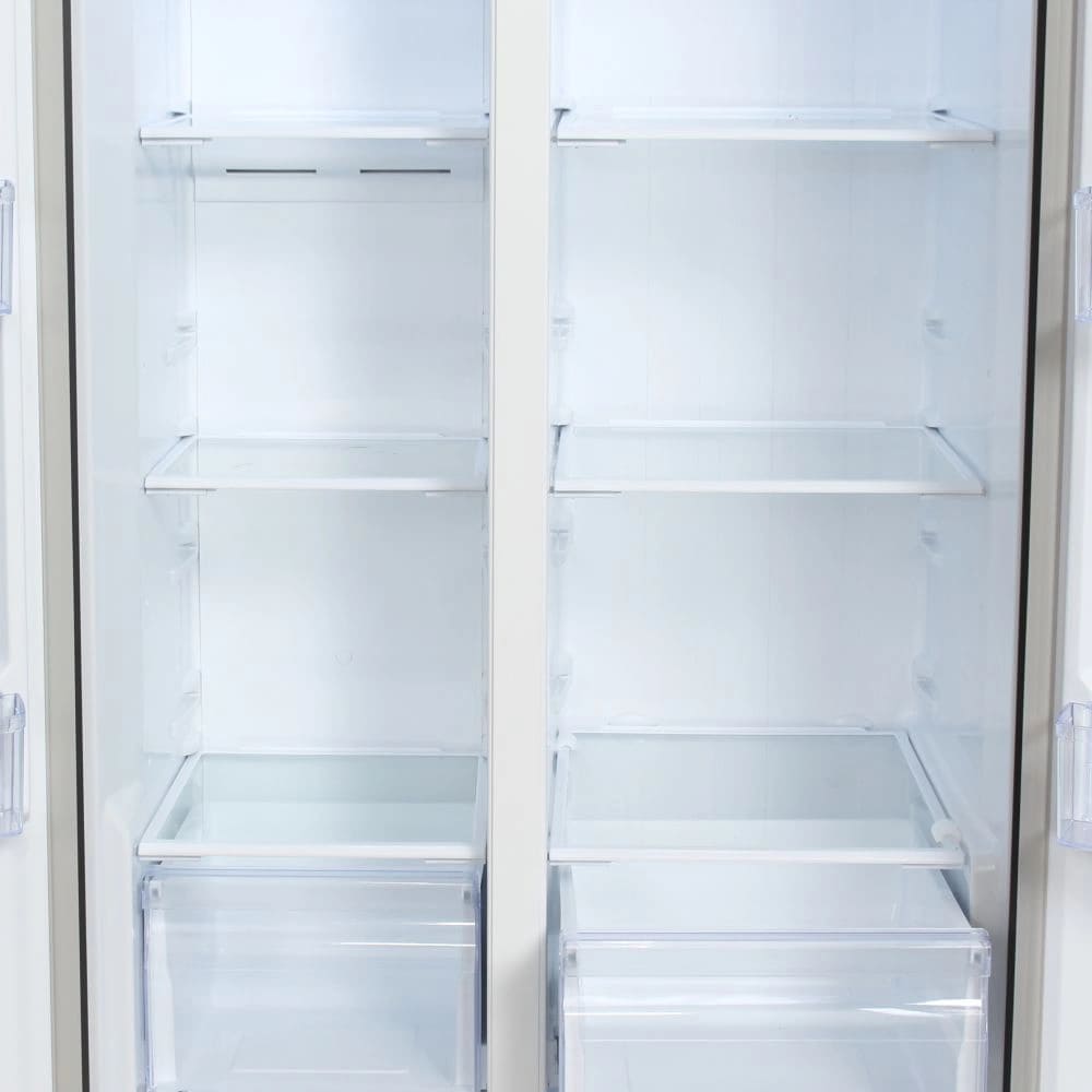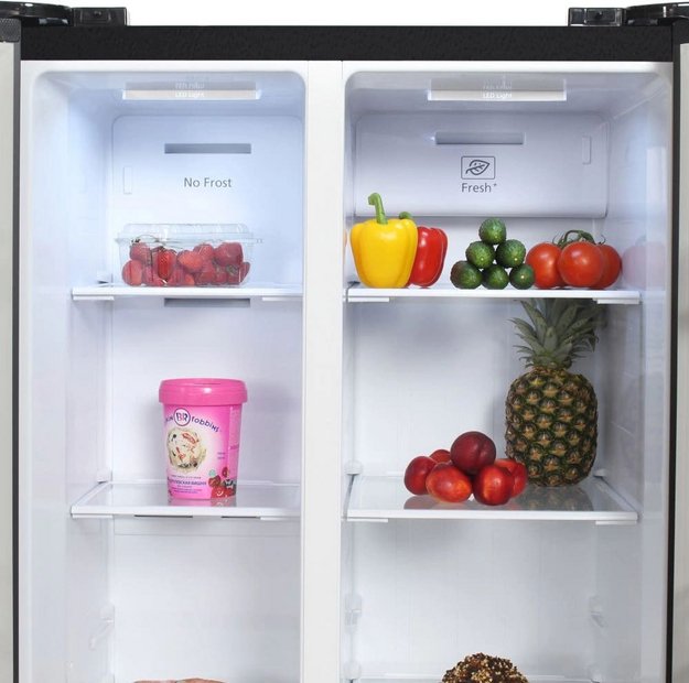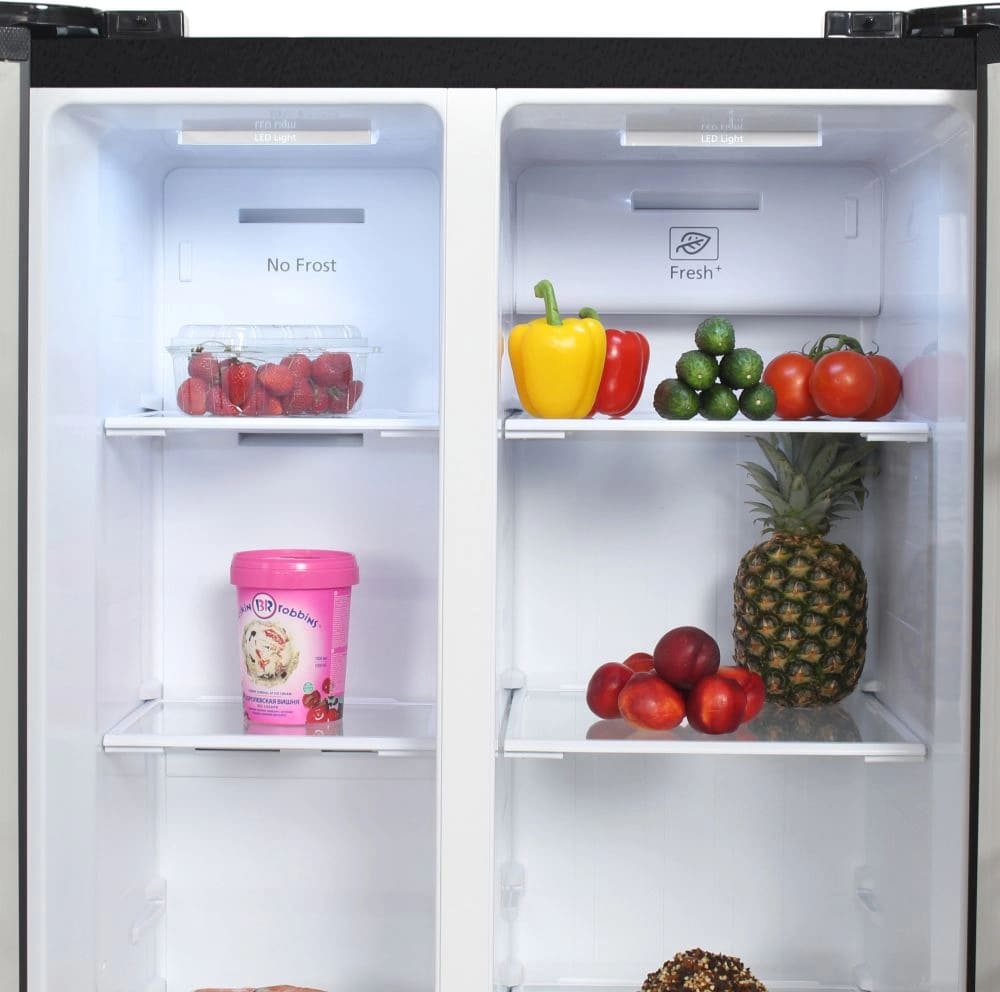 Данная модель — отдельностоящая, поэтому нужно тщательно подобрать место для ее размещения. Холодильник Side-by-Side с необычным расположением камер — сбоку друг от друга — позволяет увеличить объем продуктов для хранения. Такой вариант подходит обладателям просторной кухни, большим семьям, людям, которые запасают продукты и готовят впрок. Количество камер: 2.