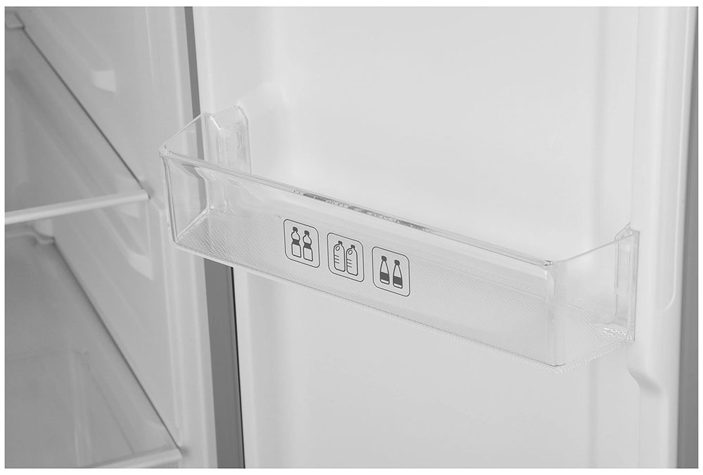 В нижней части обычно располагается полка, или балкон, для хранения бутылок. Выше имеется несколько полок для размещения консервов, йогуртов и тому подобных продуктов в таре из разных материалов. На самом верху располагаются закрытые полки, в которых можно хранить такие продукты, как яйца в специальных подставках, масло, сыр.