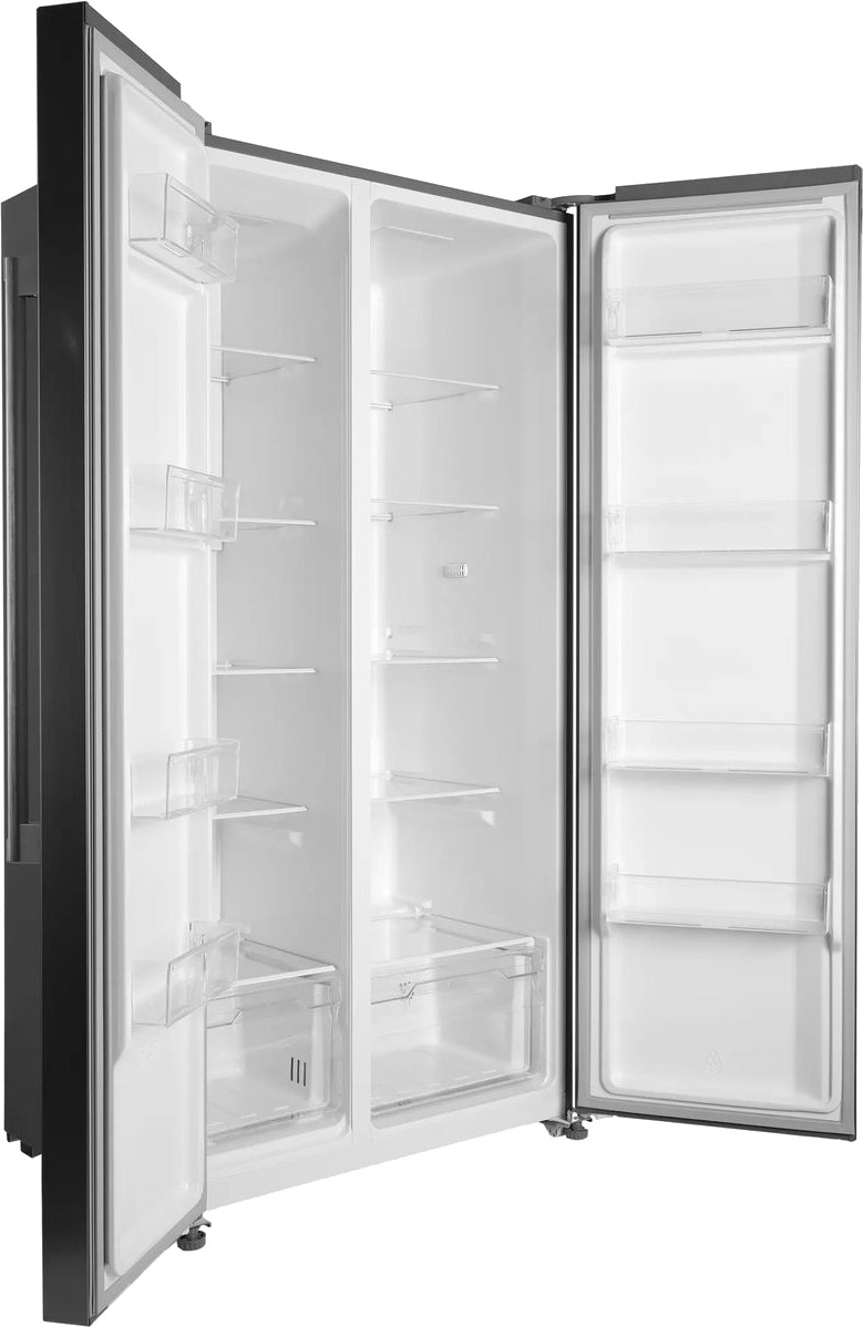 Данная модель — отдельностоящая, поэтому нужно тщательно подобрать место для ее размещения. Холодильник Side-by-Side с необычным расположением камер — сбоку друг от друга — позволяет увеличить объем продуктов для хранения. Такой вариант подходит обладателям просторной кухни, большим семьям, людям, которые запасают продукты и готовят впрок. Количество камер: 2.