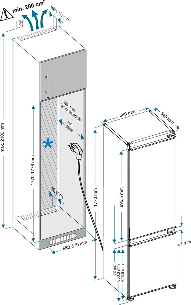 Гораздо большим спросом пользуются так называемые средне-высокие холодильники, чьи размеры находятся в диапазоне от 150 см до 180 см. Это встраиваемые и отдельностоящие модели, которые подойдут практически для любой кухни.