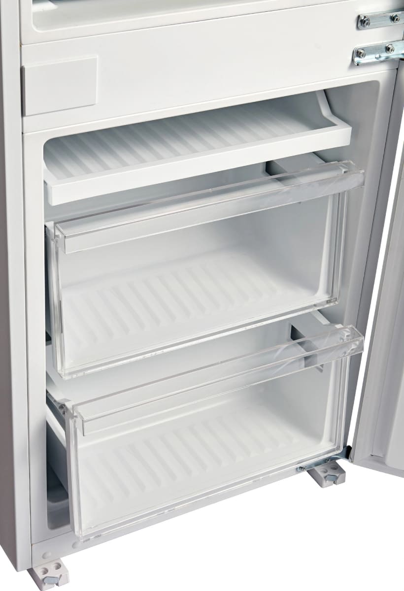 Встраиваемый прибор проще разместить в комнате, даже если общий метраж не такой уж большой. Вы можете спрятать его за декоративной панелью от мебельного фасада — советуем заранее определить нишу и заказывать панели исходя из типа крепления к двери. Вы можете поменять направление открывания двери, так как упор переставляемый и ее можно перевесить на другую сторону. Такая функция открывает больше возможностей для установки. Холодильник с морозильником обладает всеми опциями, которые чаще всего ищут и выбирают покупатели. Стандартная конфигурация — универсальный вариант для любой квартиры. Количество камер: 2.