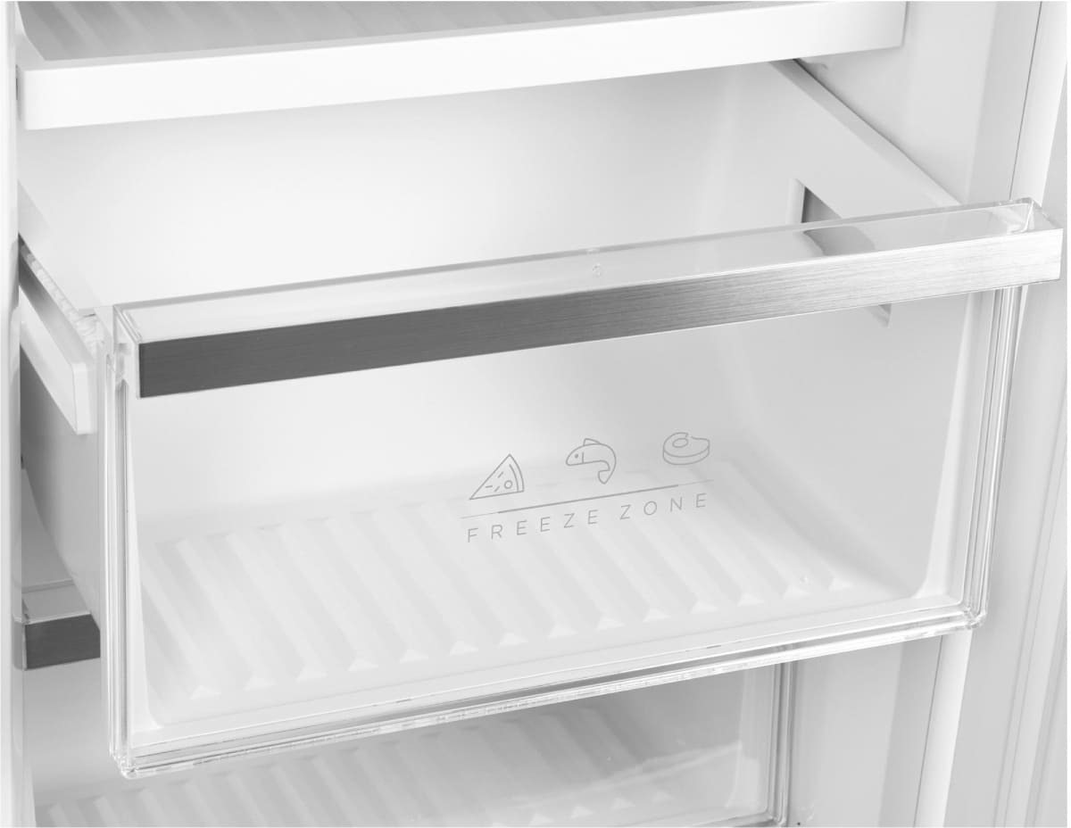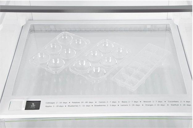 Специальная зона свежести предназначена для правильного и более длительного хранения овощей, фруктов, зелени. В ней поддерживается околонулевая температура, поэтому продукты не перемораживаются и не пересыхают.