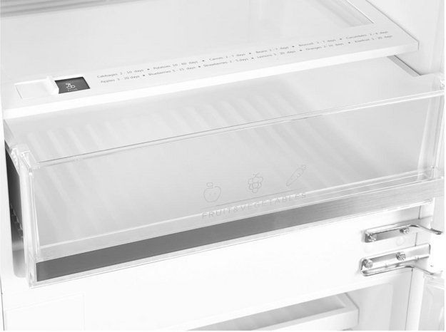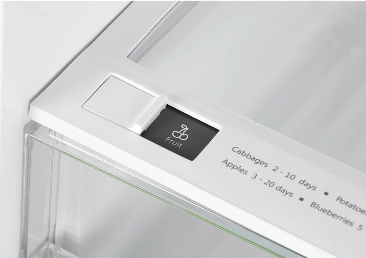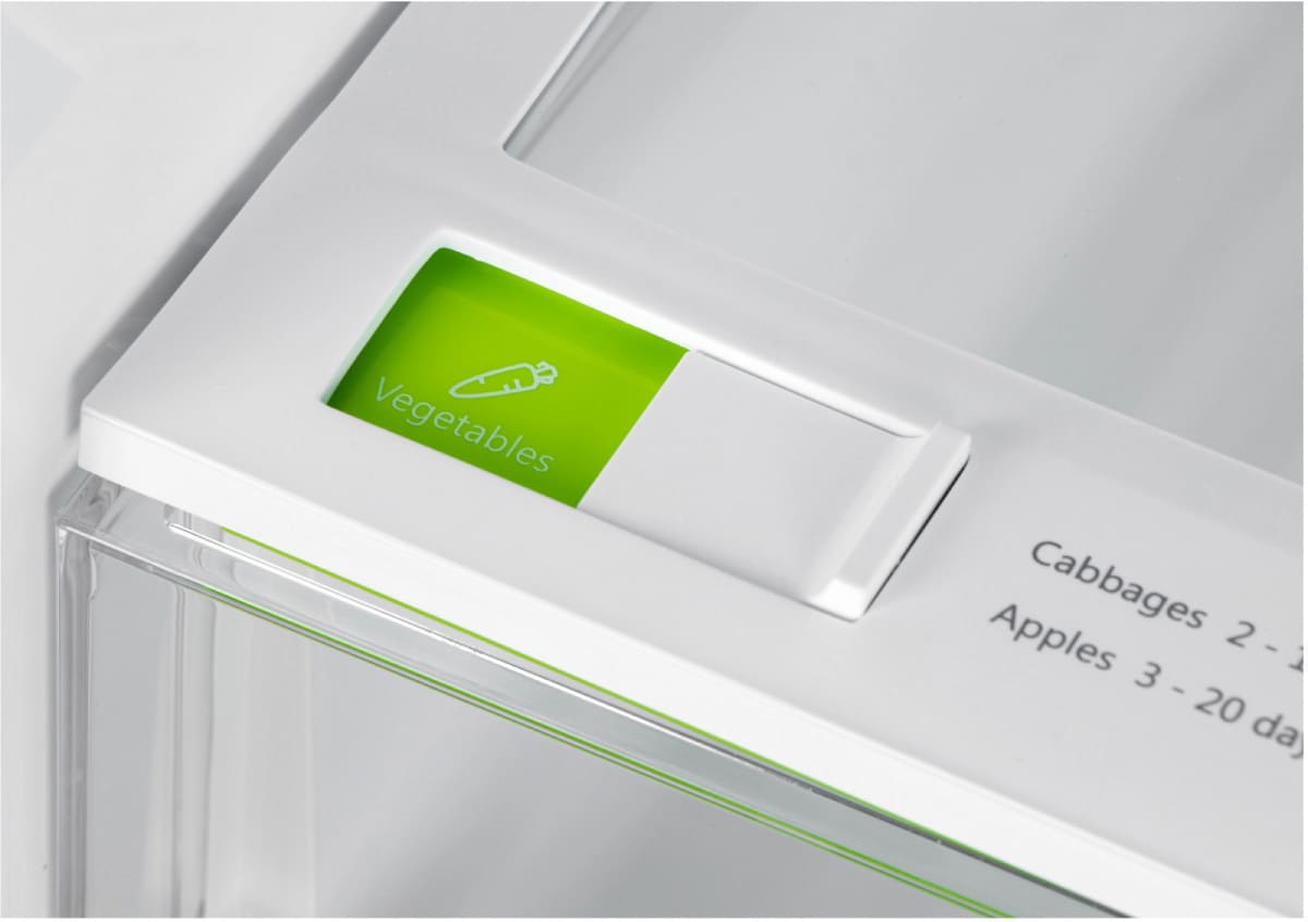 Вместительные контейнеры позволяют хранить достаточное количество овощей и фруктов. Для более длительного хранения и поддержания свежести овощей и фруктов разработаны специальные системы хранения. Среди них, например, зона свежести с увеличенной влажностью до 85% и температурой около 0 градусов. Это герметично закрывающийся ящик, часто на выдвижных роликах или направляющих, в котором имеется специальное задвижка, позволяющая регулировать влажность. Как известно, при более высокой влажности продукты с большим содержанием воды дольше остаются свежими.