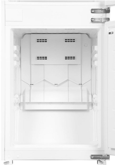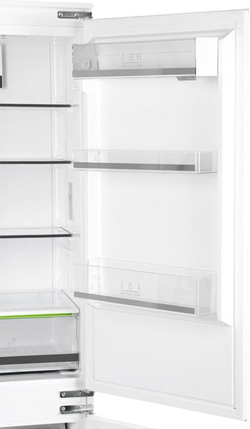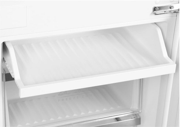 Встраиваемый прибор проще разместить в комнате, даже если общий метраж не такой уж большой. Вы можете спрятать его за декоративной панелью от мебельного фасада — советуем заранее определить нишу и заказывать панели исходя из типа крепления к двери. Вы можете поменять направление открывания двери, так как упор переставляемый и ее можно перевесить на другую сторону. Такая функция открывает больше возможностей для установки. Холодильник с морозильником обладает всеми опциями, которые чаще всего ищут и выбирают покупатели. Стандартная конфигурация — универсальный вариант для любой квартиры. Количество камер: 2.