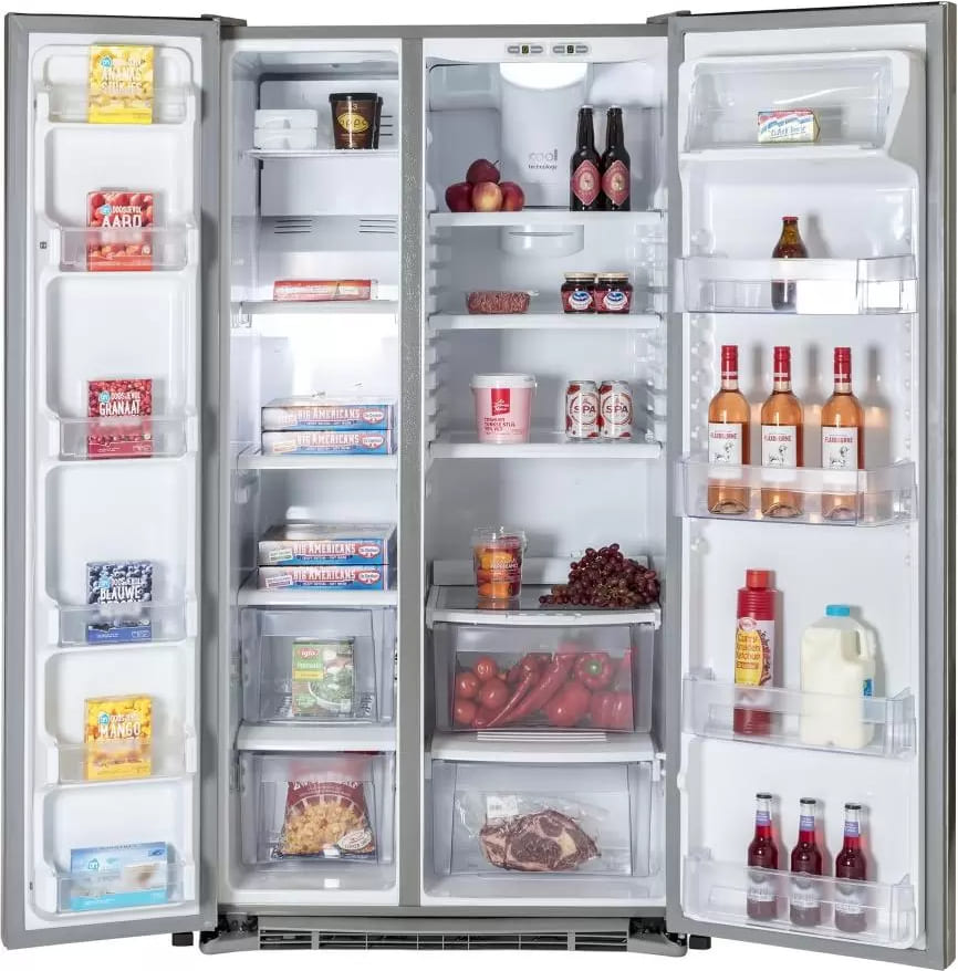 Холодильники Side-by-Side, что в переводе означает «бок-о-бок», — вместительные устройства, в которых холодильная и морозильная камеры располагаются рядом друг с другом. Они предназначаются для хранения значительного запаса продуктов и иногда называются холодильниками с американским типом компоновки, поскольку такие приборы с распашными дверями появились именно в США.