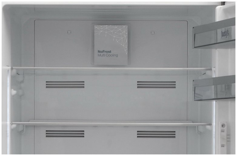 No Frost (Total No Frost, Frost Free): вентилятор обеспечивает циркуляцию охлажденного воздуха, благодаря чему лед не нарастает на стенке, а концентрируется только на скрытом внутри холодильника испарителе. Талая вода собирается в специальной емкости и испаряется. Такой холодильник не нужно размораживать – это экономит время и позволяет не останавливать прибор. Благодаря этим плюсам в современных моделях No Frost – самая распространенная система.