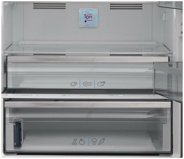 Трехкамерные модели выпускаются в нескольких вариантах. В некоторых случаях в качестве третьей камеры поступает так называемая зона свежести — отделение, где поддерживается температура около 0 градусов. В другом варианте подобные модели имеют морозильную камеру, состоящую из двух выдвижных ящиков.