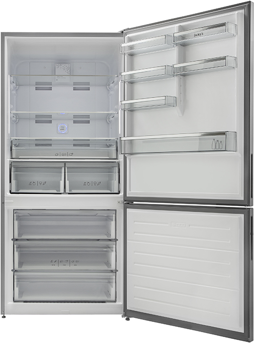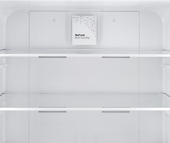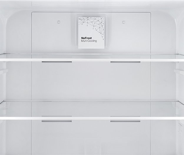 No Frost (Total No Frost, Frost Free): вентилятор обеспечивает циркуляцию охлажденного воздуха, благодаря чему лед не нарастает на стенке, а концентрируется только на скрытом внутри холодильника испарителе. Талая вода собирается в специальной емкости и испаряется. Такой холодильник не нужно размораживать – это экономит время и позволяет не останавливать прибор. Благодаря этим плюсам в современных моделях No Frost – самая распространенная система.
