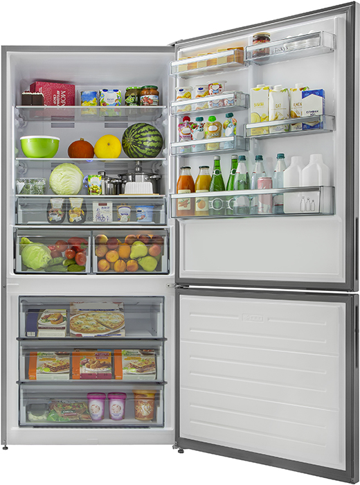 Трехкамерные модели выпускаются в нескольких вариантах. В некоторых случаях в качестве третьей камеры поступает так называемая зона свежести — отделение, где поддерживается температура около 0 градусов. В другом варианте подобные модели имеют морозильную камеру, состоящую из двух выдвижных ящиков.