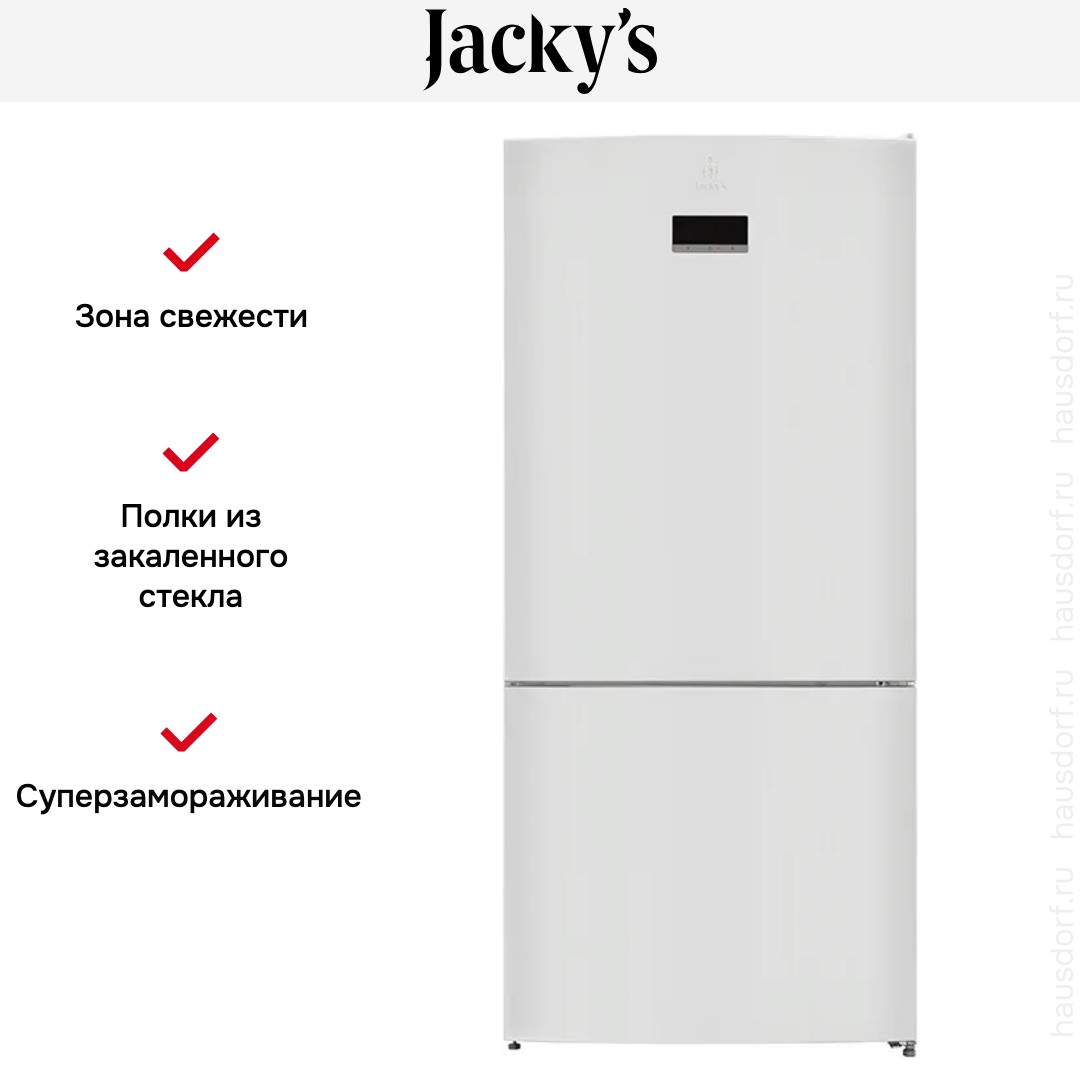 Холодильник Jacky s JR-FW568EN — солидный и функциональный прибор для большой семьи или для тех, кто любит запасаться продуктами надолго. Его белый корпус высотой 186 см и шириной 84 см выглядит сдержанно и легко впишется в классический или современный интерьер. Глубина 75 см и аккуратные линии создают впечатление монолитности, а дверной упор справа делает расположение удобным для большинства кухонных планировок.
