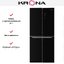 Холодильник KRONA Eiskalt 7970 XD TNF Glass BL создан для тех, кто ценит сочетание выразительного внешнего вида и продуманных технических решений: утончённый OPTIMA-дизайн с чёрным стеклянным фронтом и скрытой ручкой придаёт кухне строгую элегантность, а аккуратный LED-дисплей с сенсорной панелью на дверце обеспечивает удобный доступ к настройкам без лишних усилий. Отдельностоящая модель высотой 180 см, шириной 79 см и глубиной 70 см предлагает вместительный общий объём 472 л и полезный объём 401 л, где холодильная камера рассчитана на 268 л, тогда как морозильное отделение внизу даёт 133 л полезного пространства. Конфигурация с тремя камерами и четырьмя дверями организована так, чтобы хранение продуктов было логичным и гибким: три полки из закалённого стекла, шесть практичных полок на дверце из пластика, подставка для яиц и специализированная зона свежести Crisper Zone с двумя полками/контейнерами и одним выдвижным ящиком с контролем уровня влажности позволяют удерживать овощи и фрукты в оптимальных условиях, а боковой съёмный лоток облегчает уборку и перестановку емкостей. Морозильник оборудован двумя полками и четырьмя выдвижными ящиками из пластика, имеет лоток для льда и поддерживает диапазон температур от −14 до −22 °C с минимальной температурой до −22 °C; функция суперзамораживания и производительность до 16 кг/сутки гарантируют быструю и качественную консервирующую обработку свежих продуктов, а автономное сохранение холода до 20 часов обеспечивает сохранность содержимого при временных перебоях с электроэнергией. Полная система Total No Frost в обеих камерах освобождает от необходимости ручной разморозки, а динамическая схема циркуляции воздуха Smart AirCool равномерно распределяет холод, обеспечивая независимую регулировку температурного режима для холодильной и морозильной частей. Управление реализовано электронно с сенсорными элементами и индикацией температуры для каждой камеры; предусмотрены режим «Отпуск», защита от детей и звуковой сигнал при открытой двери, что повышает удобство эксплуатации и безопасность. Экономичность подтверждается классом энергопотребления A++ и годовым расходом 288 кВт·ч, а инверторный компрессор на хладагенте R600a обеспечивает тихую работу с уровнем шума 41 дБ и долговременную эффективность. Конструкция продумана до мелочей: три температурные зоны, угол открытия дверей до 120°, регулируемые ножки для устойчивости, индикаторы состояния и энергосберегающий режим делают прибор практичным в повседневном использовании, а тщательная продуманность внутренней компоновки и высококачественные материалы полок и ящиков гарантируют удобство хранения, аккуратный внешний вид и надёжность эксплуатации.