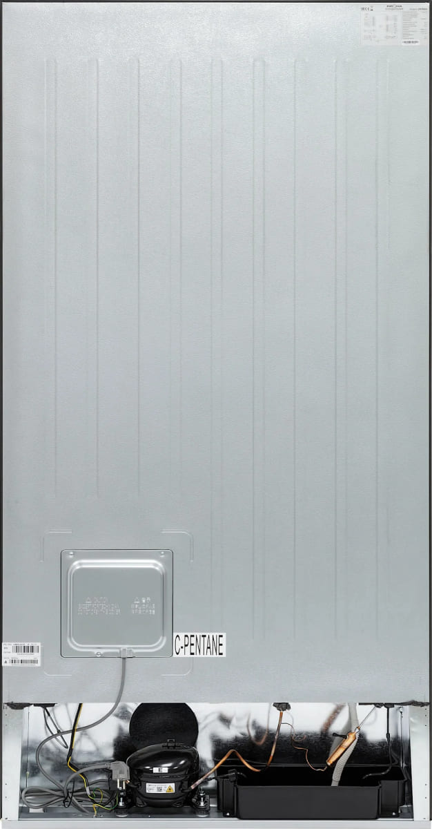 Более дешевый и распространенный материал изготовления корпуса холодильников — углеродистая сталь. Она менее устойчива к коррозии и ржавчине: для защиты от них корпус покрывается специальным лакокрасочным или полимерным покрытием. Полимерное покрытие может напыляться на поверхность в виде порошка: холодильники с таким порошковым напылением могут выглядеть так же, как и устройства из нержавеющей стали.