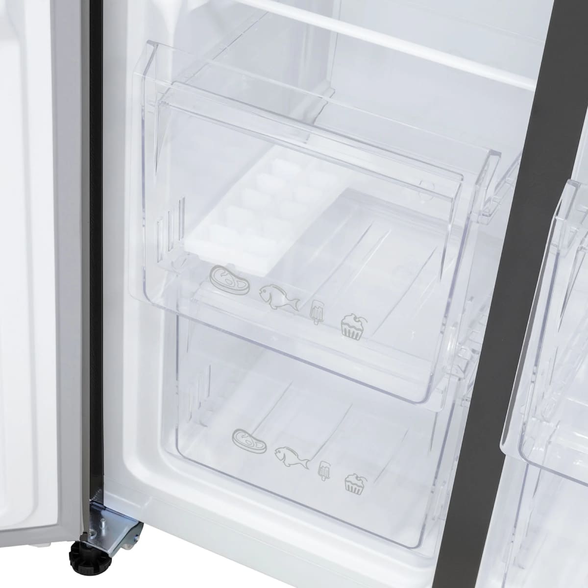 В числе подобных устройств имеются как отдельностоящие, так и встраиваемые модели: в любом случае они требуют много места для установки и могут быть размещены в просторном помещении. Преимуществом подобных устройств является прежде всего их вместительность, отличный обзор обеих камер, удобство использования, два контура охлаждения и возможность точной раздельной регулировки температуры. Кроме того, модели Side-by-Side преимущественно относятся к премиум-классу — имеют стильный внешний вид и большой набор дополнительных возможностей. Система размораживания подобных устройств — No Frost или капельная, — позволяет свести уход за прибором к минимуму.