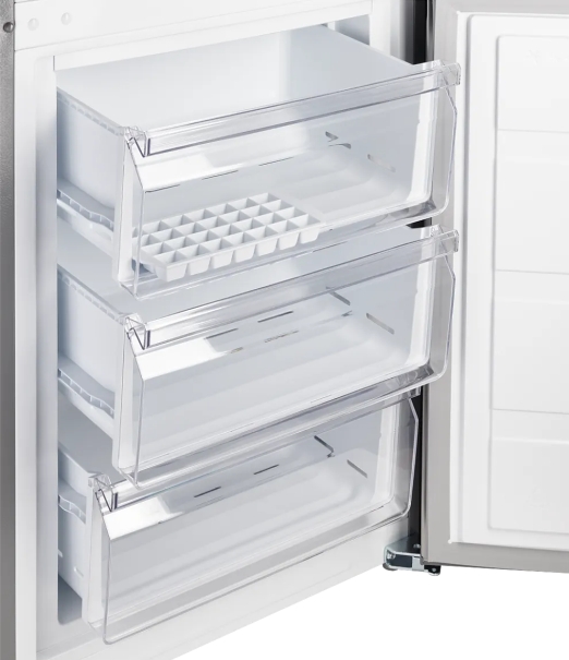 Трехкамерные модели выпускаются в нескольких вариантах. В некоторых случаях в качестве третьей камеры поступает так называемая зона свежести — отделение, где поддерживается температура около 0 градусов. В другом варианте подобные модели имеют морозильную камеру, состоящую из двух выдвижных ящиков.