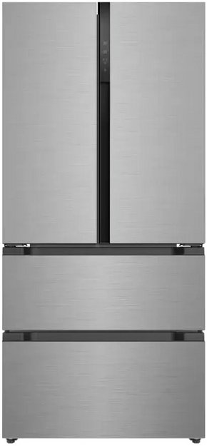Холодильники с так называемой французской дверью или French Door также имеют распашные двери, но за ними находится не две, а одна камера. Эти двери занимают не всю высоту холодильника, а только ее часть. В нижней части подобных холодильников могут находиться либо еще две распашные двери, либо выдвижные морозильные ящики.