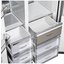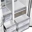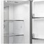 Емкость этой модели рассчитана на большие семьи и активные запасы: общая вместимость 602 л, полезный объем 503 л, где холодильная секция держит 294 л, а морозильник — 308 л. Внутреннее наполнение продумано для удобства: четыре стеклянные полки в холодильной части, три из которых регулируются по высоте, позволяют гибко размещать крупную посуду и бутылки. На дверцах расположены три пластиковые полки для соусов и напитков, есть лоток для яиц и зона свежести с двумя контейнерами для овощей и мяса. Морозильная камера оснащена семью полками и тремя ящиками, есть форма для льда и опция суперзамораживания для быстрого сохранения витаминов и текстуры продуктов.