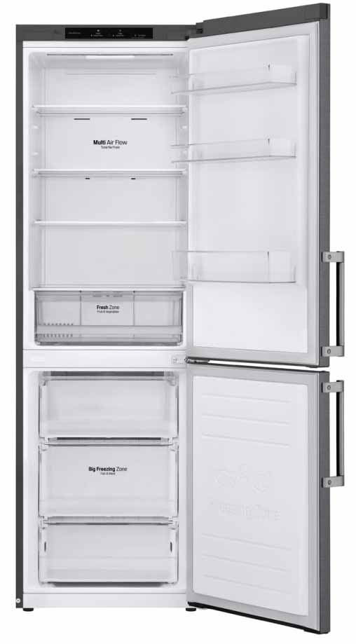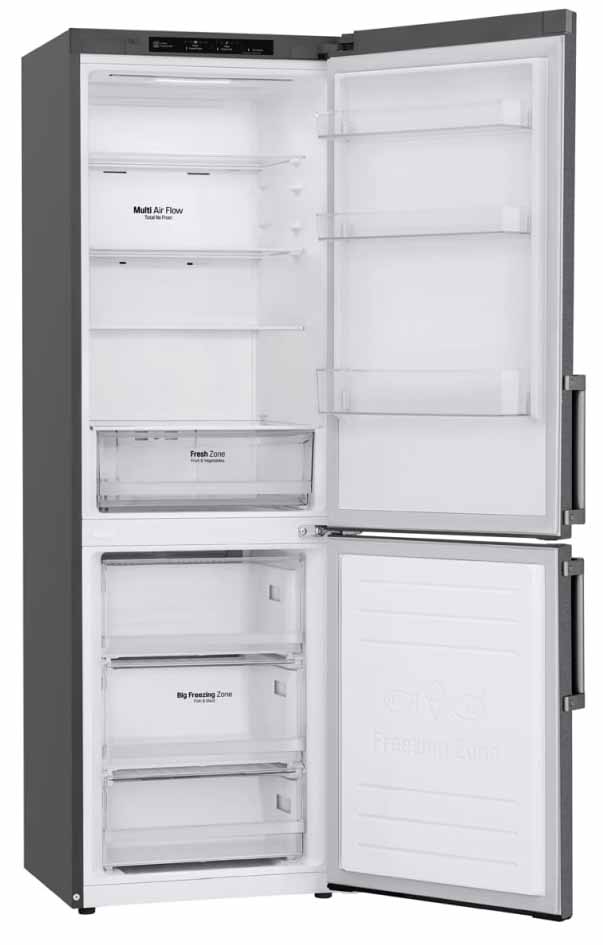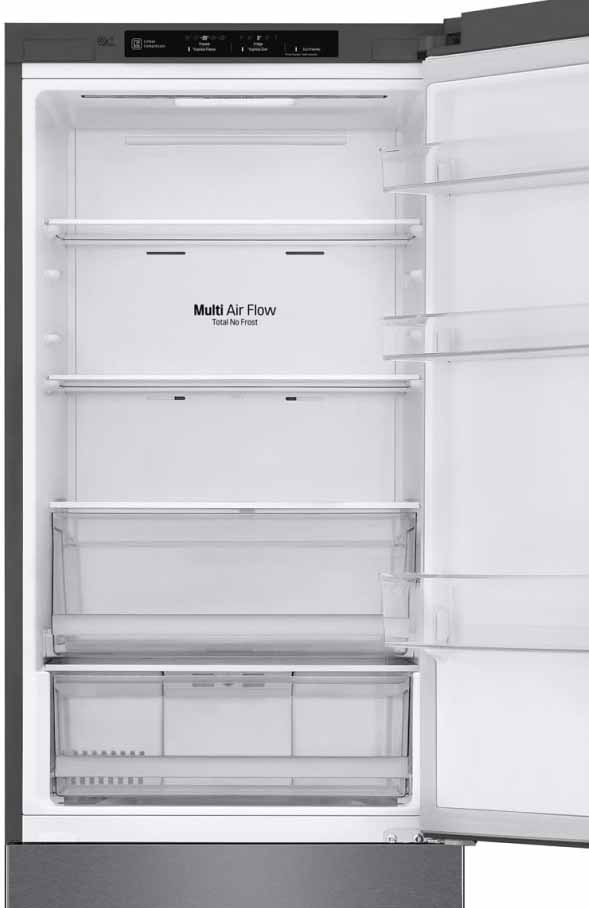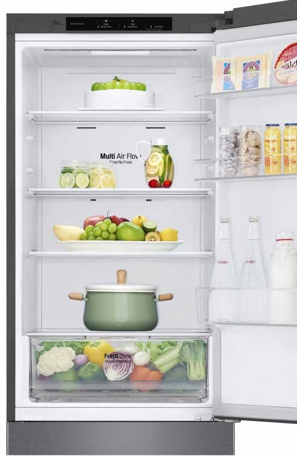 Специальная зона свежести предназначена для правильного и более длительного хранения овощей, фруктов, зелени. В ней поддерживается околонулевая температура, поэтому продукты не перемораживаются и не пересыхают. Система охлаждения этого холодильника — Multi-Airflow-System.