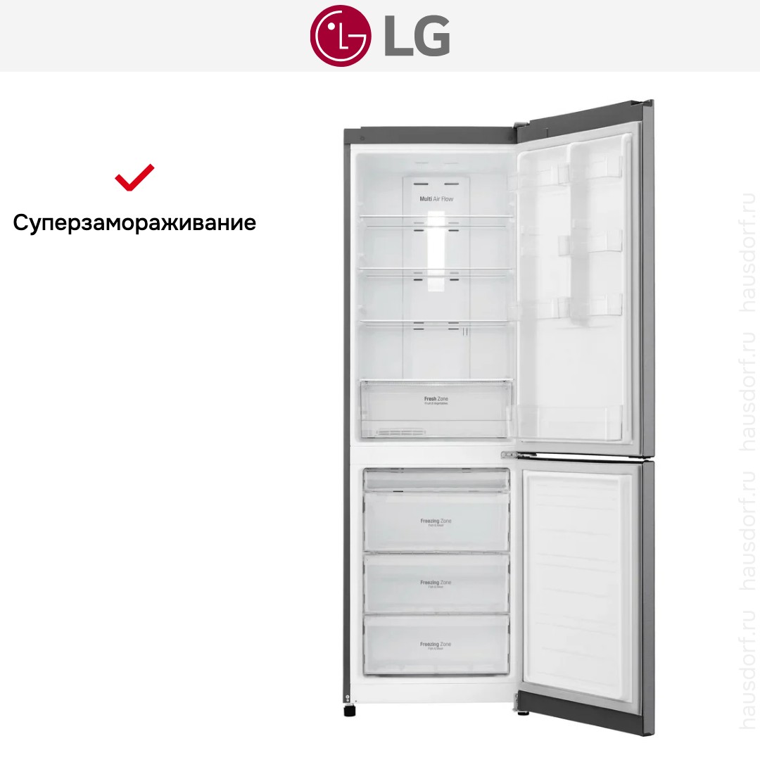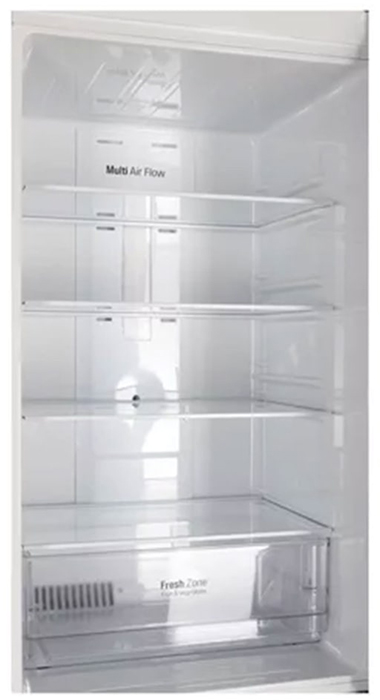 Специальная зона свежести предназначена для правильного и более длительного хранения овощей, фруктов, зелени. В ней поддерживается околонулевая температура, поэтому продукты не перемораживаются и не пересыхают. Система охлаждения этого холодильника — Multi-Airflow-System.