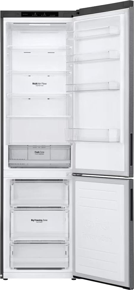 Инверторный компрессор повышает экономичность оборудования и продлевает ресурс работы, снижая энергопотребление. Хладагент R600a экологичен и эффективен, а система Multi-Airflow обеспечивает равномерное распределение холодного воздуха по полкам, предотвращая локальные перепады температур. Технология No Frost в обеих камерах исключает образование льда и избавляет от ручной разморозки. В случае отключения питания продукты сохранят холод до 16 часов.
