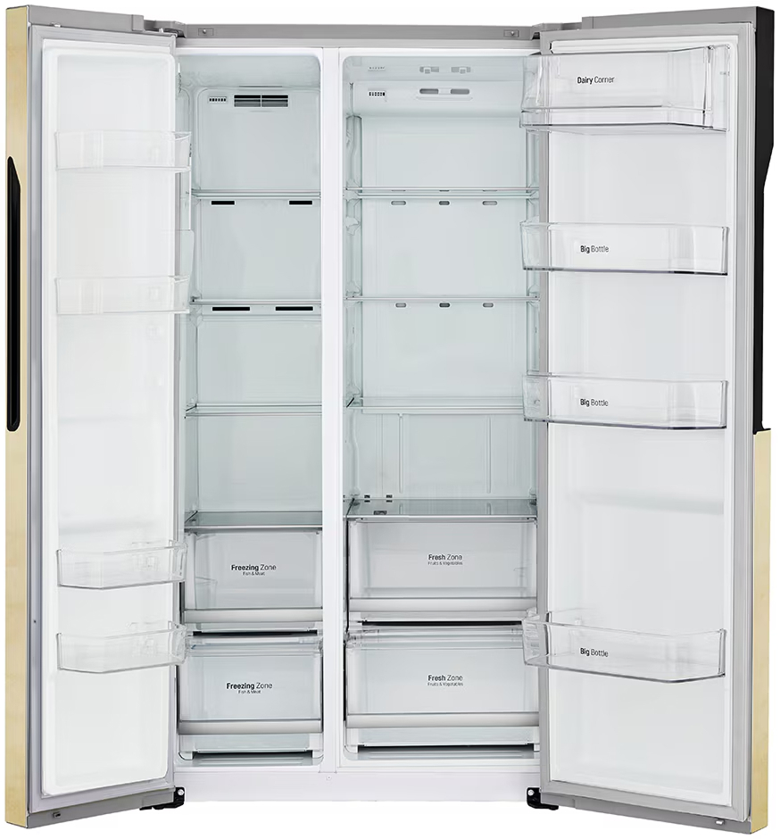 Холодильники Side-by-Side, что в переводе означает «бок-о-бок», — вместительные устройства, в которых холодильная и морозильная камеры располагаются рядом друг с другом. Они предназначаются для хранения значительного запаса продуктов и иногда называются холодильниками с американским типом компоновки, поскольку такие приборы с распашными дверями появились именно в США.