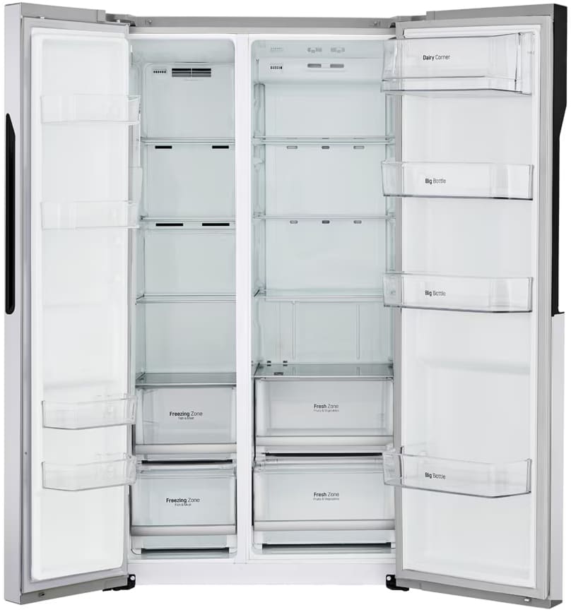 Данная модель — отдельностоящая, поэтому нужно тщательно подобрать место для ее размещения. Холодильник Side-by-Side с необычным расположением камер — сбоку друг от друга — позволяет увеличить объем продуктов для хранения. Такой вариант подходит обладателям просторной кухни, большим семьям, людям, которые запасают продукты и готовят впрок. Количество камер: 2.