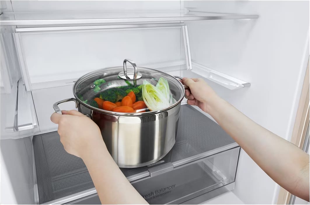 Ящики для овощей и фруктов можно найти в любой холодильной камере, какого размера ни был бы ваш холодильник — от большого устройства Side-by-Side до стандартной двухкамерной модели. В простейшем варианте они представляют собой обычные выдвижные ящики из пластика в нижней части камеры.