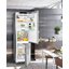 Встраиваемые холодильники монтируются в нишу или колонну. Передняя их часть закрывается декоративным мебельным фасадом и снаружи не отличается от дверцы обычного кухонного шкафа, так что их не нужно подбирать под интерьер помещения. Объем этих холодильников, как правило, несколько меньше, чем у отдельностоящих, так как при встраивании необходимо оставлять свободное пространство для вентиляции. Они отличаются меньшим уровнем шума, а также лучше держат холод и отличаются большей экономичностью из-за дополнительного слоя изоляции. Ассортимент этих холодильников не так велик, как у отдельно стоящих, установка более трудоемкая, а стоимость обычно несколько выше.