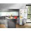 В морозильной камере система Vario включает съемные стеклянные полки и установленные на них пластиковые ящики с прозрачной передней панелью. Если имеется необходимость размещения в морозильнике больших упаковок или особо крупных продуктов, любой ящик можно извлечь, увеличивая тем самым вместимость камеры. Если же и этого недостаточно, можно без труда извлечь и сами полки, превратив в морозильную камеру в одно большое отделение.