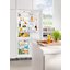 Встраиваемые холодильники монтируются в нишу или колонну. Передняя их часть закрывается декоративным мебельным фасадом и снаружи не отличается от дверцы обычного кухонного шкафа, так что их не нужно подбирать под интерьер помещения. Объем этих холодильников, как правило, несколько меньше, чем у отдельностоящих, так как при встраивании необходимо оставлять свободное пространство для вентиляции. Они отличаются меньшим уровнем шума, а также лучше держат холод и отличаются большей экономичностью из-за дополнительного слоя изоляции. Ассортимент этих холодильников не так велик, как у отдельно стоящих, установка более трудоемкая, а стоимость обычно несколько выше.