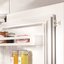 Встраиваемые холодильники монтируются в нишу или колонну. Передняя их часть закрывается декоративным мебельным фасадом и снаружи не отличается от дверцы обычного кухонного шкафа, так что их не нужно подбирать под интерьер помещения. Объем этих холодильников, как правило, несколько меньше, чем у отдельностоящих, так как при встраивании необходимо оставлять свободное пространство для вентиляции. Они отличаются меньшим уровнем шума, а также лучше держат холод и отличаются большей экономичностью из-за дополнительного слоя изоляции. Ассортимент этих холодильников не так велик, как у отдельно стоящих, установка более трудоемкая, а стоимость обычно несколько выше.