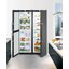 В числе подобных устройств имеются как отдельностоящие, так и встраиваемые модели: в любом случае они требуют много места для установки и могут быть размещены в просторном помещении. Преимуществом подобных устройств является прежде всего их вместительность, отличный обзор обеих камер, удобство использования, два контура охлаждения и возможность точной раздельной регулировки температуры. Кроме того, модели Side-by-Side преимущественно относятся к премиум-классу — имеют стильный внешний вид и большой набор дополнительных возможностей. Система размораживания подобных устройств — No Frost или капельная, — позволяет свести уход за прибором к минимуму.