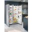 Liebherr SBSef 7242 — side-by-side холодильник объемом 634 л. Легко управляется с помощью сенсорной панели, имеется также дисплей с цифровой индикацией температуры. Холодильная камера освещается светодиодными лампами, предусмотрено 7 вместительных полок из закаленного стекла. Морозильное отделение способно замораживать до 20 кг продуктов в сутки и сохранять холод 20 часов при отключении электричества.