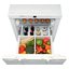 Для стеклянных бутылок, особенно винных и содержащих другие алкогольные напитки, предусматривается размещение на подвесной решетчатой металлической полке. Бутылки на ней располагаются в горизонтальном положении — это оптимальный способ хранения вин. Съемная металлическая полка легко моется под краном.
