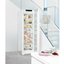 Встраиваемые холодильники монтируются в нишу или колонну. Передняя их часть закрывается декоративным мебельным фасадом и снаружи не отличается от дверцы обычного кухонного шкафа, так что их не нужно подбирать под интерьер помещения. Объем этих холодильников, как правило, несколько меньше, чем у отдельностоящих, так как при встраивании необходимо оставлять свободное пространство для вентиляции. Они отличаются меньшим уровнем шума, а также лучше держат холод и отличаются большей экономичностью из-за дополнительного слоя изоляции. Ассортимент этих холодильников не так велик, как у отдельно стоящих, установка более трудоемкая, а стоимость обычно несколько выше.