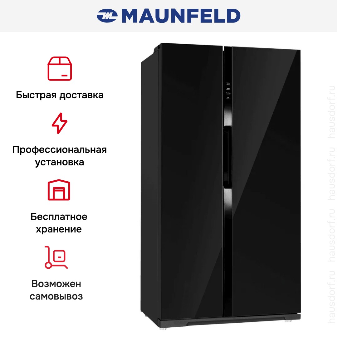 Холодильник Maunfeld XMFF177NFB Slim Inverter — стильная и вместительная техника для семьи конструкции Side-by-Side. Вертикально ориентированные камеры располагаются рядом, создавая лаконичный современный облик прибора. Габариты 176.5×90.5×68.5 см обеспечивают большую вместимость при достаточно компактной глубине.