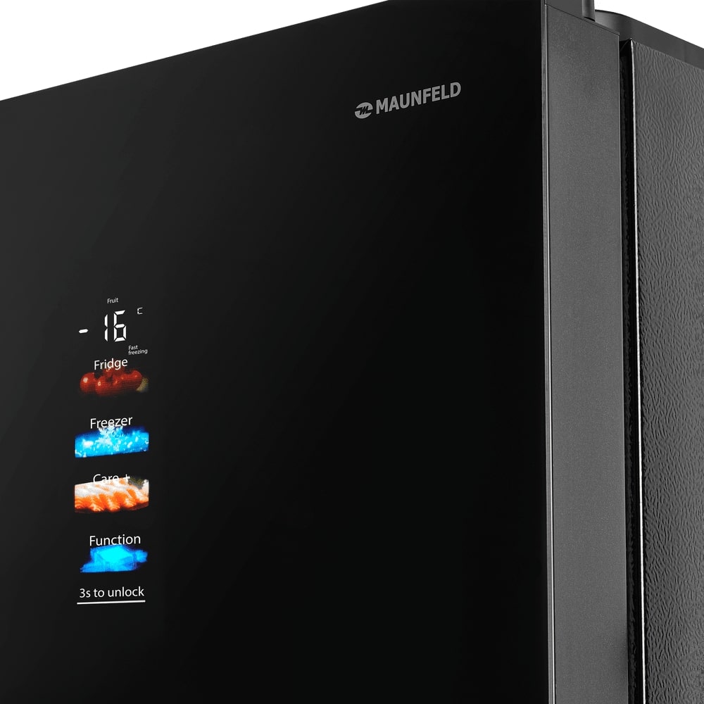 Холодильник Maunfeld XMFF190NFDB01 — отдельно стоящий двухкамерный агрегат с морозильной камерой внизу. Его габариты 190,5×83×60 см дают 515 л общего объема и 508 л полезного. Лаконичный корпус легко впишется в современный интерьер, а фронтальная панель с сенсорными кнопками выглядит строго и функционально. Регулируемые ножки помогают устойчиво установить прибор даже на неровном полу.