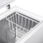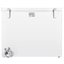 Maunfeld MFL200W — морозильный ларь высотой 83 см, глубиной 56 см и шириной 98 см. Модель с откидной плотно прилегающей крышкой имеет общий объем 197 литров: ларь можно использовать для хранения мяса, рыбы, овощей и фруктов, мороженого и десертов в домашних условиях или в небольших магазинах и кафе. Корпус изготовлен из металла и сверху покрыт белой эмалью. Для выравнивания при установке предусмотрены регулируемые по высоте ножки. Угол открытия дверцы составляет 90 градусов. Этой модели присвоен климатический класс ST, что означает возможность работы при температуре окружающей среды от +16°C до +38°С. Стенки единственной камеры изготовлены из пластика легкой очистки с антибактериальным покрытием. Для хранения мелких упаковок служит подвесная сетчатая корзина. Для получения кубиков льда предусмотрена специальная форма. Свежие продукты рекомендуется помещать у боковых стенок камеры для более быстрого замораживания.