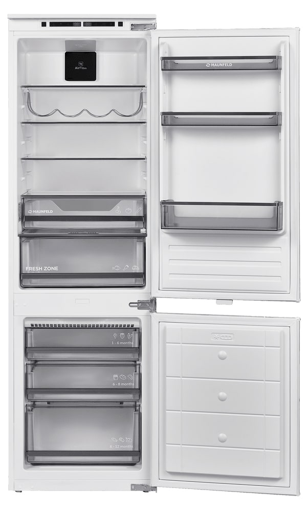 Встраиваемый холодильник Maunfeld XMBF177NFFWGR Inverter представлен в лаконичном дизайне, который будет скрыт за мебельной дверцей. Конструкция предусматривает монтаж door-on-door, что обеспечивает плотное прилегание и аккуратный вид. Благодаря этому техника станет еще одним элементом кухонного гарнитура и не нарушит единство интерьера. Габариты 177×54×54 см оптимальны для размещения в узкой мебельной нише. Возможность перевесить дверь и регулировка ножек упрощают установку.