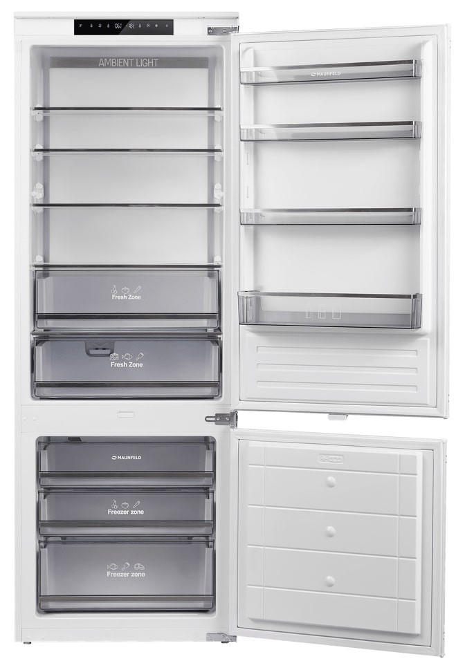 Трехкамерные модели выпускаются в нескольких вариантах. В некоторых случаях в качестве третьей камеры поступает так называемая зона свежести — отделение, где поддерживается температура около 0 градусов. В другом варианте подобные модели имеют морозильную камеру, состоящую из двух выдвижных ящиков.