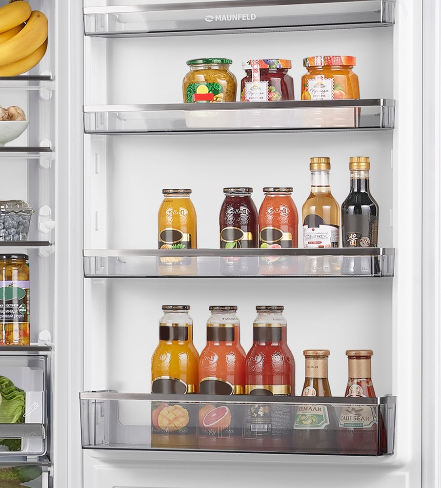 Полки в холодильнике позволяют рационально организовать хранение продуктов, обеспечить легкий поиск и доступ к ним. Основные материалы для изготовления полок — это пластик, стекло и металл. Часть полок можно переставлять по высоте или складывать вдвое или втрое.
