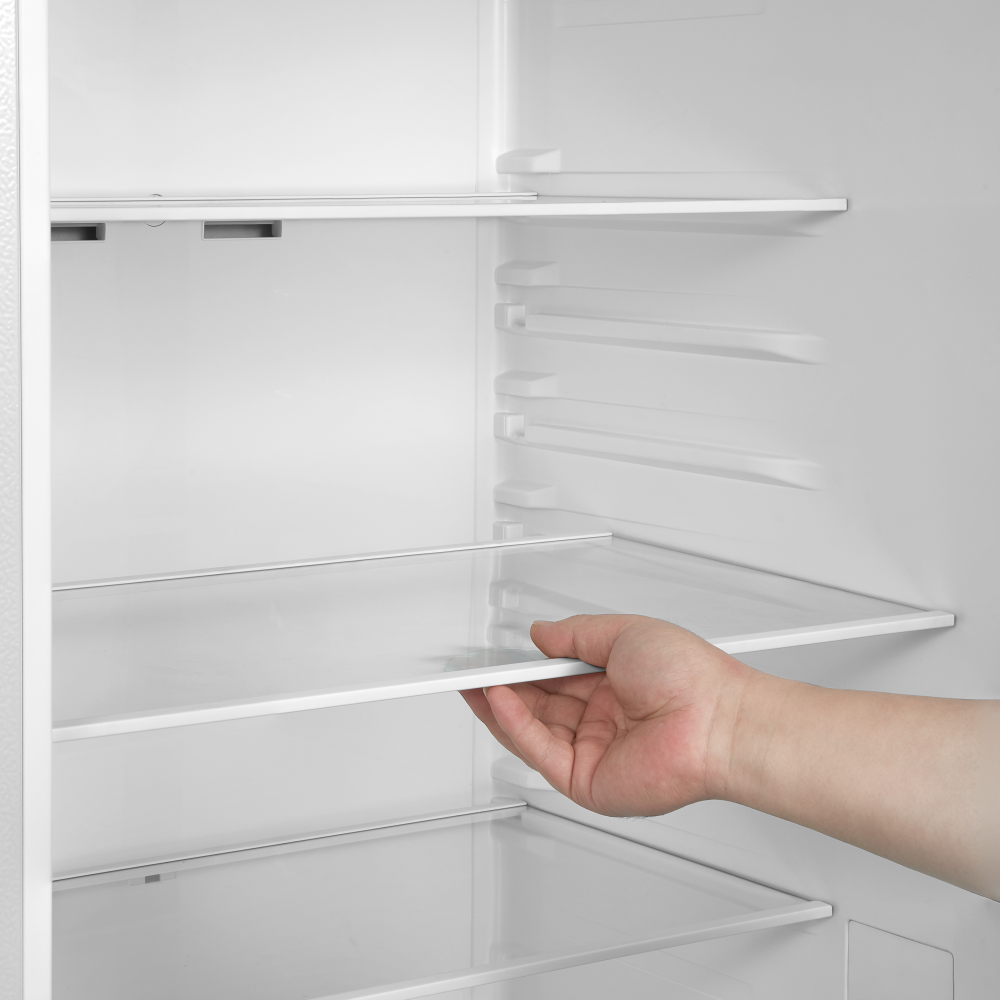 Полки в холодильнике позволяют рационально организовать хранение продуктов, обеспечить легкий поиск и доступ к ним. Основные материалы для изготовления полок — это пластик, стекло и металл. Часть полок можно переставлять по высоте или складывать вдвое или втрое.