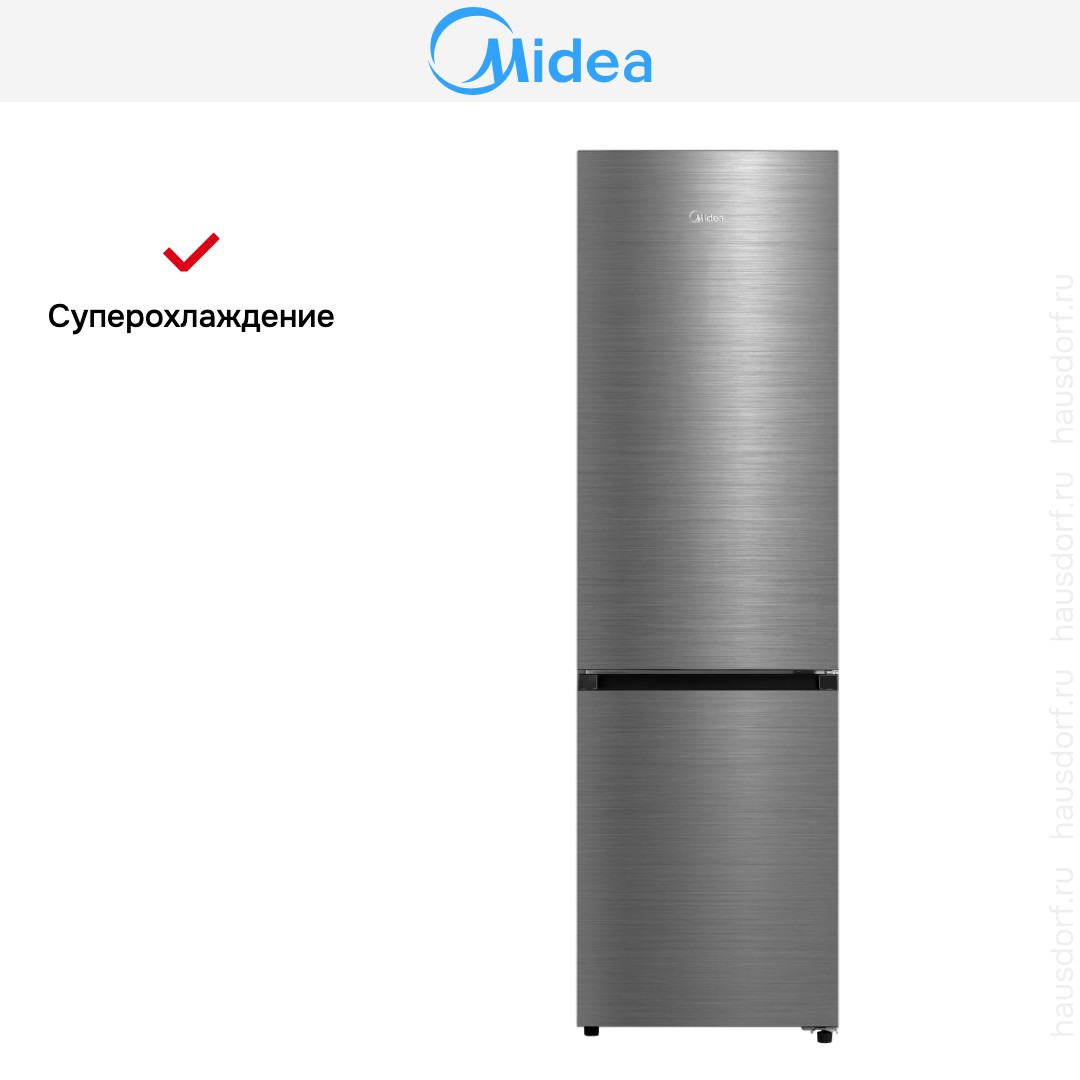 Холодильник Midea MDRB519MGE46ID сочетает продуманный внешний вид и продвинутые технические решения. Дизайн в цвете нержавеющей стали выглядит сдержанно и стильно, он впишется в разные интерьеры кухни. Высота 201 см делает прибор визуально монументальным, а узкая ширина 59.5 см позволяет экономить место вдоль кухонного гарнитура. Правый дверной упор влияет на схему расстановки мебели, поэтому при планировке полезно учитывать сторону открывания. Матовая металлическая поверхность удобна в уходе и меньше маркируется отпечатками, чем глянцевые фасады.